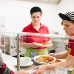 Es ist geschafft! Die Mensa ist eröffnet und das Küchenteam um Marlene Ollendorf hat am ersten Tag gleich knapp 70 Essen ausgegeben. Der Andrang war groß, aber es schien alles sehr gut geschmeckt zu haben. Insbesondere die auch ohne Vorbestellung wählbaren kleinen Salatteller fanden viele Abnehmer. Auch der positive Feedback zum hellen und schön möblierten Wintergarten hat alle an der Planung Beteiligten sehr gefreut.